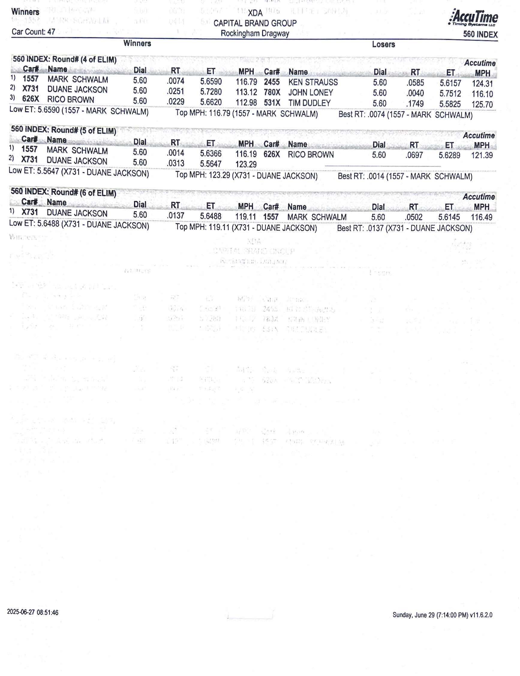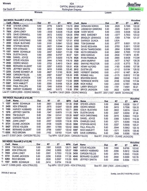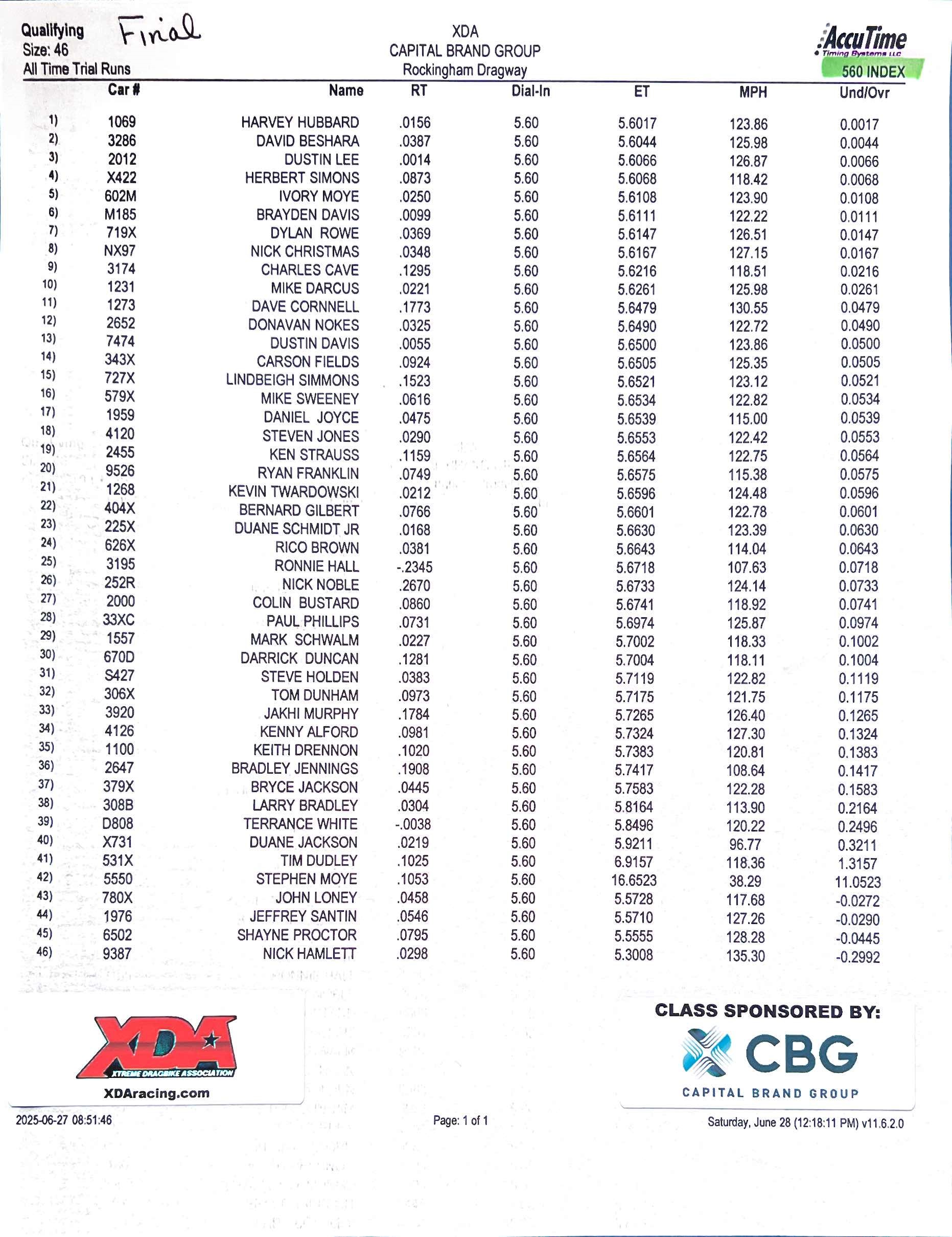 CAPITAL BRAND GROUP 5.60 INDEX Qualifying Results